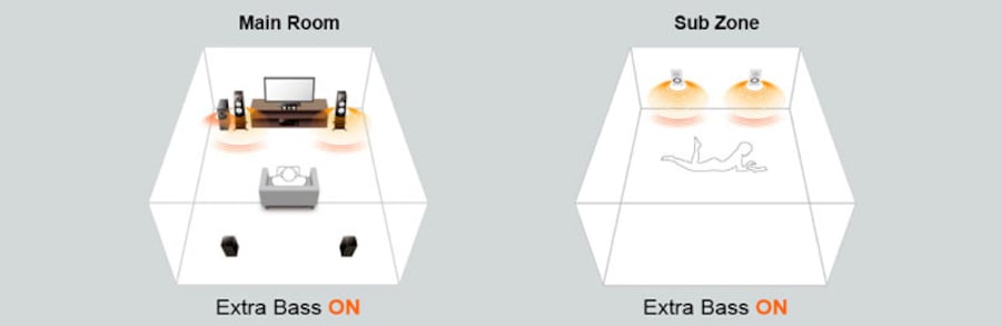 - Zone Extra Bass for more powerful bass sound in another room (Zone 2)