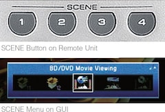 The SCENE PLUS function simplifies operation by providing one touch power-on along with selection of the desired source and the appropriate DSP programmes. SCENE PLUS offers a choice of 12 SCENE selections, four of which can be assigned to the second zone in a multi-zone system. SCENE PLUS can be selected from the front panel, remote control, GUI and even from the AV Controller app.