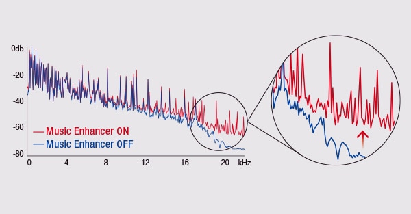 When music is encoded into a digitally compressed format like MP3, the frequency response suffers. Yamaha’s Compressed Music Enhancer employs sophisticated digital signal processing using exclusive algorithms to restore what was lost, so the music always sounds the way it should.