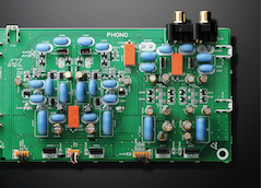 The phono amp is comprised of an MC head amp and an equaliser amp, each of which are discretely configured, resulting in a rich sound with pronounced musicality, when playing vinyl records with both MC and MM phone cartridges.