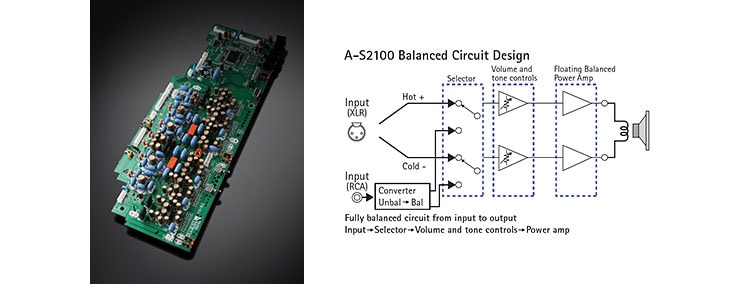 The headphone amp also is equipped with fully discrete configuration, for preeminent drivability and damping properties. Included as well is a specialised level trimmer that responds to various load impedances. The superior quality sound that only the A-S2100 can attain is yours to enjoy, even when listening on headphones.