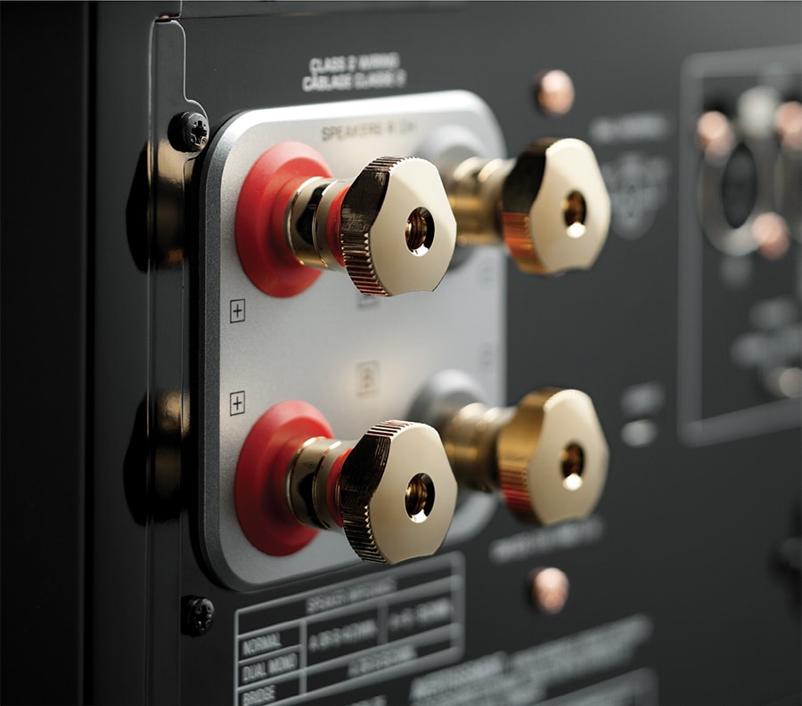 The M-5000 utilises oversized, screw-type speaker terminals to ensure ease-of-use and a secure connection. Cut from a pure brass block, the original Yamaha design denotes a meticulous attention to detail and premier quality.