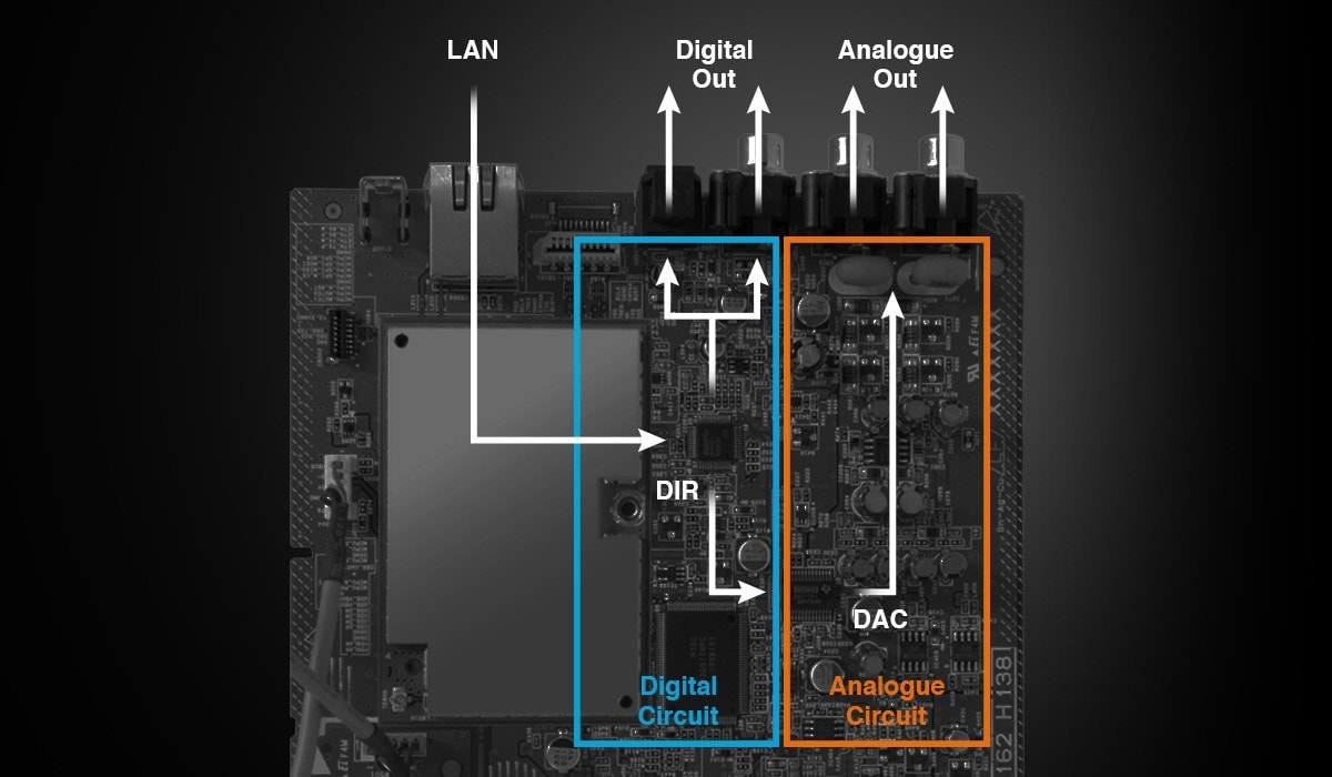 Despite its slim body, the NP-S303 packs a wealth of knowhow and technology inside, cultivated by Yamaha's long experience of Hi-Fi development. Starting with meticulously selected high sound quality parts, the signal path has been minimised, analog and digital circuits have been given completely separate blocks, and noise generation has been thoroughly suppressed.