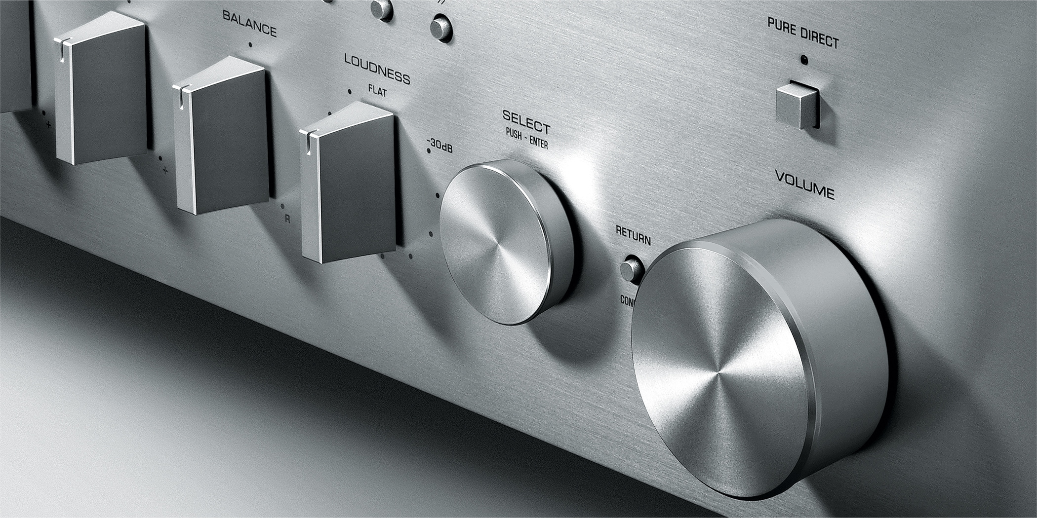 Pure Direct mode enables the music signals to travel the shortest possible circuit route, bypassing the buffer amp and the tone, loudness and balance controls to virtually eliminate any signal degradation, for the purest sound quality.