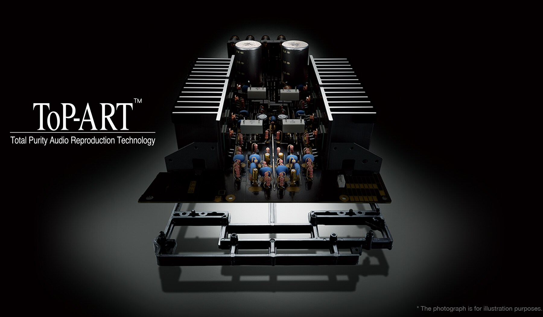 The power amp block adopts a symmetrical and direct circuit layout based on the ToP-ART concept, featuring a parallel push-pull structure using a total of eight bipolar type power transistors (four each, on left and right) as its output terminals. And by minimising the lengths of the audio signal paths in the circuit design, we’ve lowered impedance to achieve superb drive power with a maximum output of 145 watts (per channel).
