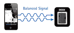 An unbalanced interface is subject to commonmode voltage noise, so Yamaha uses a balanced system to receive the iPod signal. This makes a significant contribution to reducing noise in the system for higher sound quality.