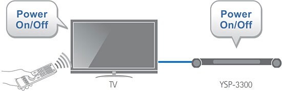 When connected to a CEC-compatible TV, such as a Panasonic VIERA Link TV, the YSP-3300 will turn on and off together with the TV, and you can use the TV remote unit to control the volume. CEC also provides advanced functionality with other components.