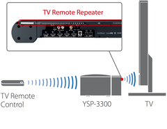 Even if the YSP-3300 blocks the TV’s remote control signal, the TV Remote Repeater on the back transmits the signal to the TV so operation is not affected.