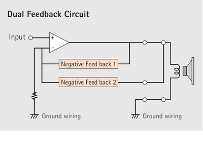 The built-in power amplifier delivers stable power output of 130 W with high efficiency while minimizing power consumption and heat production. It does not require an output filter coil, resulting in extremely low noise and distortion. High speed transient response is also excellent. The dual feedback circuit reduces distortion by applying feedback twice, resulting in higher sound clarity.