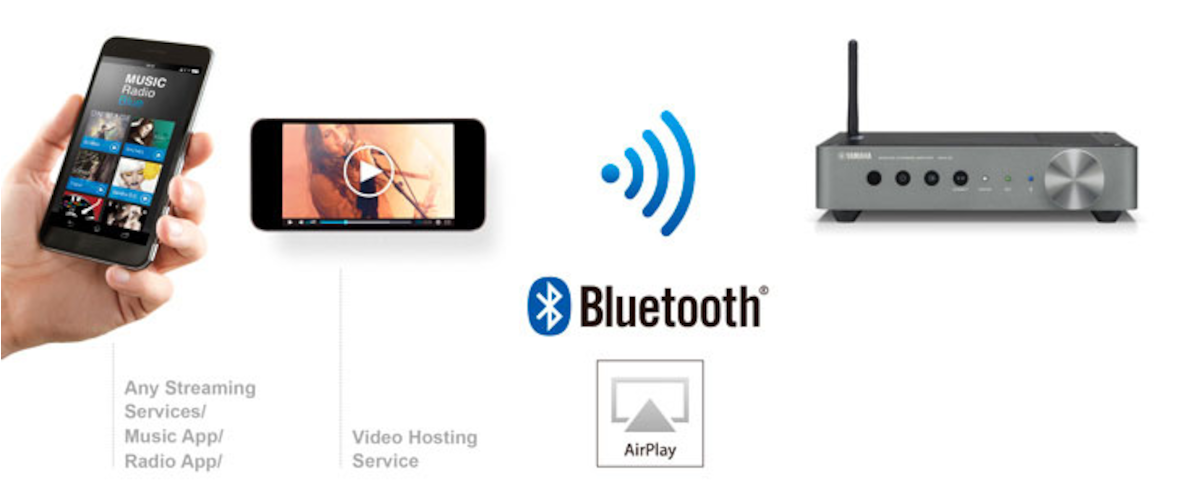 You can hear all the music sources from your smartphone via wireless Bluetooth or AirPlay connection. You can play music from music apps, radio apps, or YouTube™-type video hosting services.