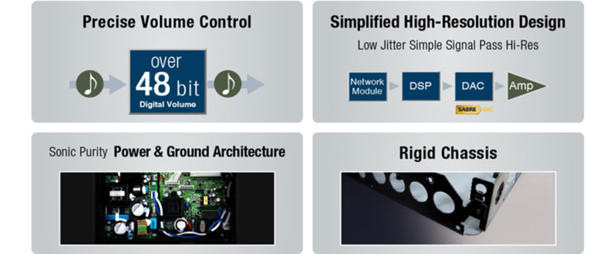 The WXC-50 reaps the benefits of Yamaha’s advanced audio technologies and circuit designs. The preamp circuitry, for example, minimises digital jitter and uses the same high performance ESS DAC that is found in high-end AV receivers. Yamaha’s proprietary power supply ground configuration, called DAC on Pure Ground, ensures that the power supply will never negatively affect sound quality. The 48-bit digital volume control provides much greater precision and quality that conventional digital or analogue controls. In addition, a highly rigid, metal chassis supplies the stability necessary for powerful, clear music reproduction.