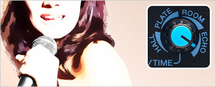 HALL mimics the sound characteristics of a large hall, PLATE for a more classic, defined sound, ROOM adds a more intimate sound to performances, and ECHO gives instruments or vocal a more professional edge, as well as being an attractive option for KARAOKE.