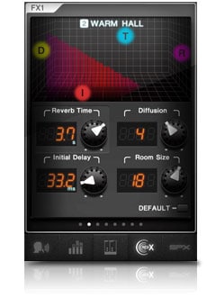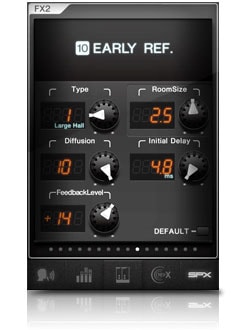 “Reverb Time” as well as additional “Diffusion”, “Initial Delay” and “Room Size” parameters can be adjusted for each effect program using the dedicated knobs or graphic display of the MGP Editor interface.