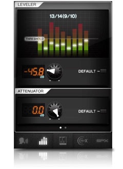 While manual control of Leveler's Attenuator via the MGP console assigns the same parameter settings to both Hybrid Channels, MGP Editor lets you apply different “Attenuator” settings for playback, as well as additional “Threshold” parameter settings to each channel via the graphic display or two knobs of Editor's interface.