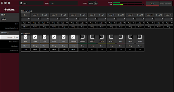 The Latency Group field on the VST Rack lets you group together specified plug-ins and synchronize the latencies of the racks within each group. When using the Auto settings, the rack with the maximum latency within a group is shown; when using the Manual settings, you can input a numeric value by double-clicking.