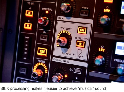“Four selectable channel EQ algorithms are provided, and I find the “precise” type to be perfect for my needs. It just feels right. The EQ responds exactly the way I expect it to. A number of guest operators have said that they feel the same way. SILK processing is outstanding too. Whenever I want a little more vocal presence I’ll reach for the SILK processing TEXTURE knob before I touch the EQ. I haven’t grasped the feature’s full potential yet, but it is already clear that it will see a lot of use.”