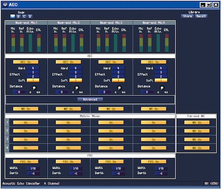 Multi-point conference systems are easily incorporated using the Matrix Mixer which allows up to 4 far-end inputs for each channel of AEC.