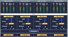 There are 42 notch filter bands whose width and depth parameters can be adjusted for best gain before feedback depending on the room acoustics. Each band will analyze suppression point automatically.