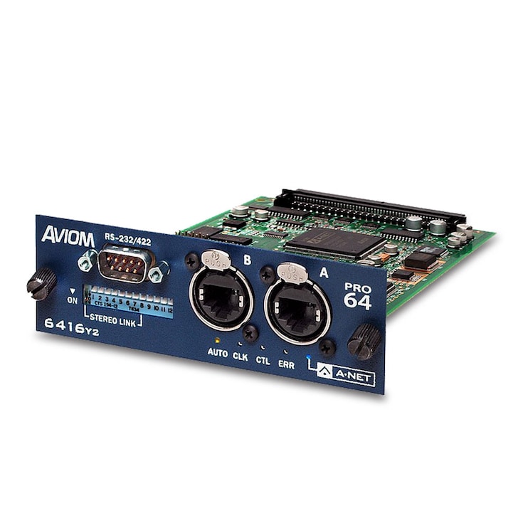 The Pivitec e16i/o-MY 16 is a Mini-YGDAI 16-channel bidirectional network interface card for Yamaha digital consoles.
