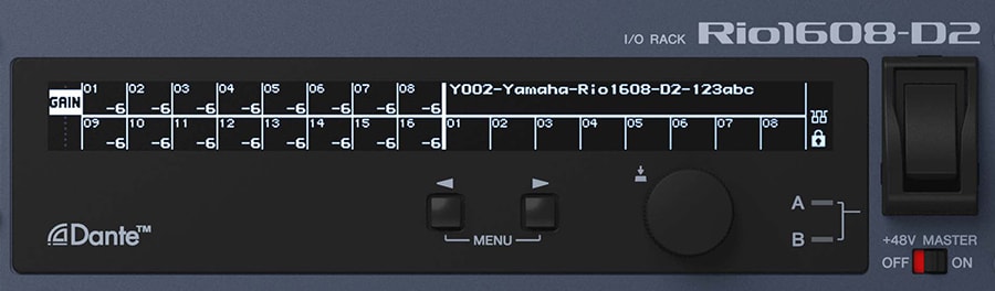Another Rio3224-D2 and Rio1608-D2 refinement is the provision of character/icon displays rather than basic LED indicators, allowing quick, easy confirmation of Dante settings as well as metering, gain, high-pass filters, phantom power, and more. It is also possible to edit gain, high-pass filters, and phantom power settings directly from the I/O Rack interface, and even lock them if required. Remote operation from the R Remote software application is also possible.