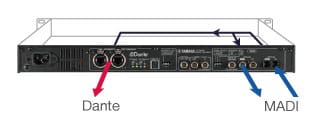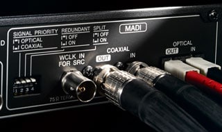 In addition to Dante network redundancy, redundant MADI connections can be made via optical and coaxial cables so that if the primary input signal is interrupted the system automatically switches to the second connection. Optical cables are ideal for long-distance transmission.