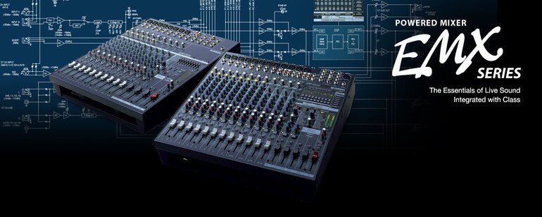 Live sound gear can be intimidating, but Yamaha's new EMX5016CF Powered Mixer takes the confusion out of setting up a professional-sounding live music experience. This 16-channel stereo powered mixer, which includes two 500-watt amplifiers, is ideal for bands, churches and small rental applications. The EMX5016CF delivers the convenience of an integrated powered mixer with input capacity, flexible features, and solid sound that critical live sound applications demand. It is remarkably compact and portable for a live sound system with this much capability, but offers performance and reliability that will satisfy the discerning professional user either on the road or in installed applications. And thanks to leading Yamaha digital technology, the EMX5016CF also includes a number of innovations that make it easier than ever to achieve top-class sound in just about any venue. An impressive power output of 500 watts per channel means it can handle fairly large audiences, indoors or out. The EMX5016CF goes considerably beyond the standard definition of "powered mixer," entering the realm of serious sound reinforcement.