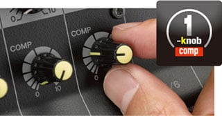 EMX7/5 is equipped with the popular 1-knob COMP function used in MGP and MG series models. By simply operating a single control, it is possible to get optimal compression for vocals and instruments. As the [COMP] control is turned to the right, the threshold, ratio, and output gain are adjusted simultaneously.
