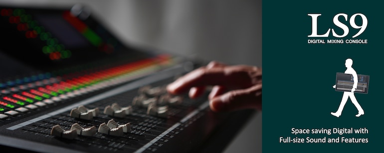 The LS9 series consoles follow in the distinguished footsteps of the Yamaha PM1D, PM5D, and M7CL, expanding Yamaha's digital mixing console lineup for live sound and installations. The LS9 series consists of the 32-mic/line input 64-channel LS9-32, and the 16-mic/line input 32 channel LS9-16. While being compact and light enough for one person to move and set up easily, both models include features that have been field-proven in previous Yamaha digital consoles as well as outstanding sonic quality. In addition to an extensive range of gating, compression, and equalization capabilities, there's also a built-in USB memory recorder/player for recording or BGM playback, and other functionality that give you everything you need for small to medium scale live sound or installed applications in remarkably compact, all-in-one consoles.