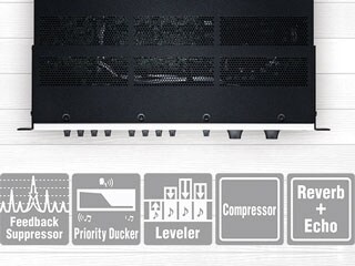 - DSP functions for music playback and microphone use (Feedback Suppressor, Priority Ducker, Leveler, Compressor, Reverb & Echo)