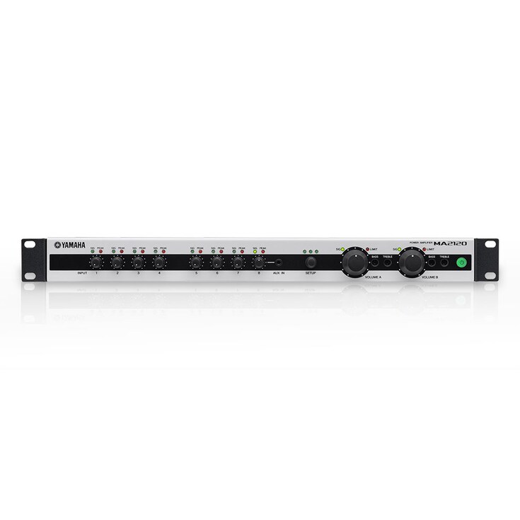 With quick, easy setup and intuitive operation, the compact MA and PA series power amplifiers make it easier than ever to bring your commercial space to life. The MA2030a and PA2030a are ideal audio solutions for retail stores, eateries, classrooms or public facilities like hospitals. The MA2120 and PA2120 meet the demands of a wide range of applications requiring higher power as well as more flexible DSP functionality and zone control. All models combine approachable, unobtrusive design with efficient, flexible performance. The MA2030a and MA2120 offer mixing capability with source EQ (Bass/Treble) control, as well as some of the same state-of-the-art DSP technol-ogies that are acclaimed features of professional Yamaha audio gear. Whether providing background music for a café or restaurant or powering a conference room or other application requiring microphone input, the MA/PA series amplifiers are simple yet powerful tools that can help establish an ideal commercial sound environment.