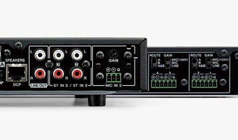 Advanced DSP features for background music and paging are efficiently packed into the remarkably compact MA and PA amplifier enclosures. There’s a Feedback Suppressor that can eliminate annoying feedback when using a microphone, a Priority Ducker that smoothly adjusts levels when input is detected at an announcement microphone, a Leveler that maintains constant overall level regardless of changes in input levels and more. The MA2120 additionally features reverb, echo and compressor processing that can be used to enhance the sound and quality of microphone input in a variety of applications.