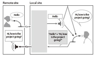 In remote conferencing situations, speech from the remote location emanating from the local speaker can be picked up by the local microphone and returned to the remote location in addition to the local speech. The AEC component can prevent this problem effectively. Let’s see how it works.
