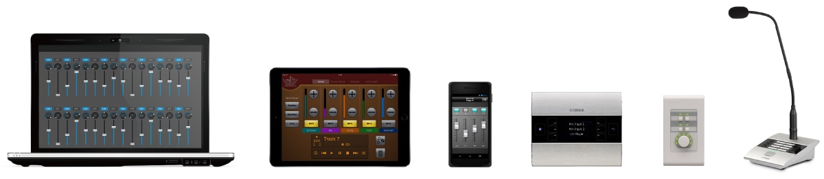 Yamaha provides a versatile range of remote control options to suit the various installation types as well as the customer's unique requirements. These range from simple wall panel remotes to fully customizable software based control for either iOS or Windows based platforms.