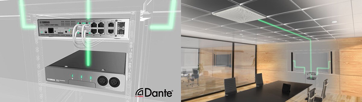Standard network audio support for Dante—all compatible devices can be connected with single network cable
