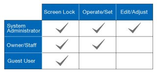 Access to the control panels and design pages is controlled by three passcodes for maximum security as well as operating convenience. 1: Pass-code for screen lock: To avoid the miss operation 2: Pass-code for power user: For advanced user to move to special page(s) 3: Pass-code for administrator: For the contractor to design control panel