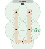 (within 3 m (9.8 ft), to a maximum recommended range of 5 m (16.4 ft). *per microphone)
