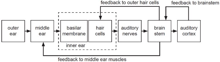 The adult human brain comprises approximately one hundred billion (1011) brain cells, called neurons, capable of transmitting and receiving bio-electrical (‘digital’) signals between each other. Each neuron has connections with thousands of nearby neurons through short connections (dendrites). Some neurons connect to sensory and motor organs in the body through additional long connections (axons). With an estimated total of five trillion (5x1014) connections, the human brain has massive bio-electrical processing power to manage the human body processes, memory and ‘thinking’. And, of course, hearing.