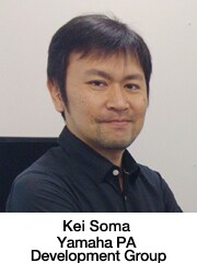 Kei Soma joined Yamaha in 2009. After gaining experience in powered speaker and analog mixer development he joined the R&D team and began market research in the U.S.A in 2010. After returning to Japan he was placed in charge of developing network communication for digital mixers while simultaneously working as system design leader for the CL and QL series digital mixing consoles. Kei has played a major role in the design and development of the DSR series, MGP series, CL/QL series, R series, and the Tio1608-D I/O rack.