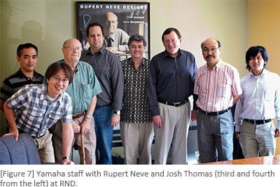 The meeting was a success and our preparations paid off. That evening we received word that Mr. Neve would like to collaborate with Yamaha and K’s Lab. We subsequently learned that Mr. Neve had previously been approached by numerous developers and had rejected them all. The opportunity to collaborate with RND came to us because Mr. Neve understood that we not only had the technology to accurately emulate the measurable characteristics of analog gear, but that we were devoted to achieving the best possible sound as well. Without that understanding the collaboration between RND and Yamaha K’s Lab would not have begun.