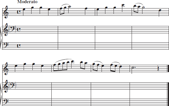 (a)The examiner reads the melody together with the candidate; (b) the examiner sings the melody; (c) the examiner plays the melody in phrases and the candidate imitates.
