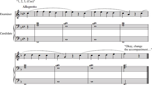 1. The examiner tells candidates the key, and plays the whole melody with the accompaniment.