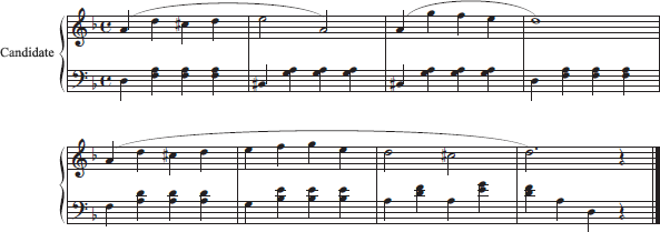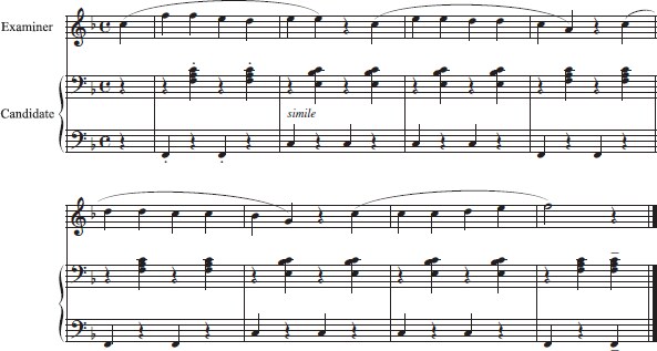 2. As the examiner plays the melody a second time, candidates play the most suitable chords with both hands based on the given bass notes.