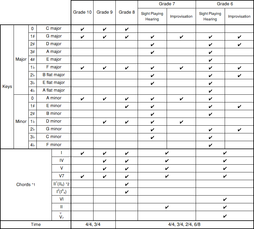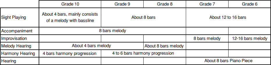 For Grades 7-6, candidates are required to listen to music with melodies and harmonies played simultaneously.