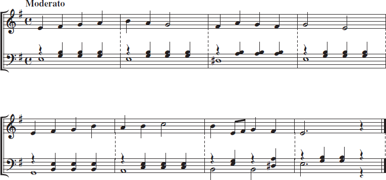 • Practice adding chords to simple melodies and then playing an accompaniment. It is good to practice such exercises repeatedly.