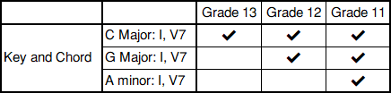 3. Then, candidate sings/calls (Grade 13), plays (Grades 12, 11) the chords by-ear: