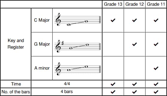 Grade 12: a part (2-4 bars) of the melody of a repertoire piece they have played in the grade exam.