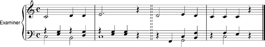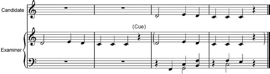 3. Examiner plays the first half, and then the candidate plays/sings (Grade 13), plays (Grades 12, 11) the melody by ear. Examiner may play the melody bracketed if the candidate sings it for Grade 13.