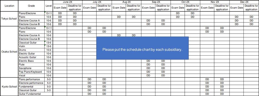 Contact your local Yamaha Music School for more information on how to apply, exam dates and deadline