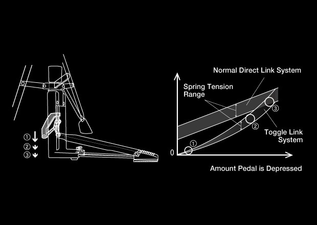 Yamaha's original Toggle Link System delivers a stroke that feels light for the first part but gets increasingly heavier and closer to normal as the stroke continues, making light and nimble footwork possible. (HS1200T only)