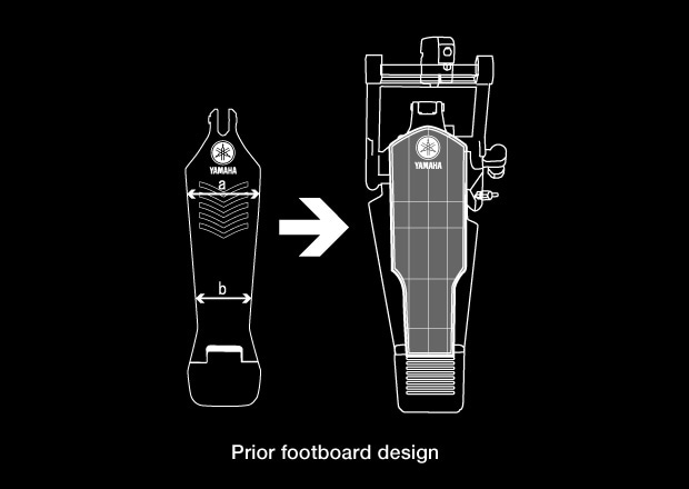 New foot pedals are designed with a wider toe section (a) that offers subtler foot control compared to previous designs. The heel section (b) has been narrowed to maintain the perfect weight balance of prior models and improved performance.